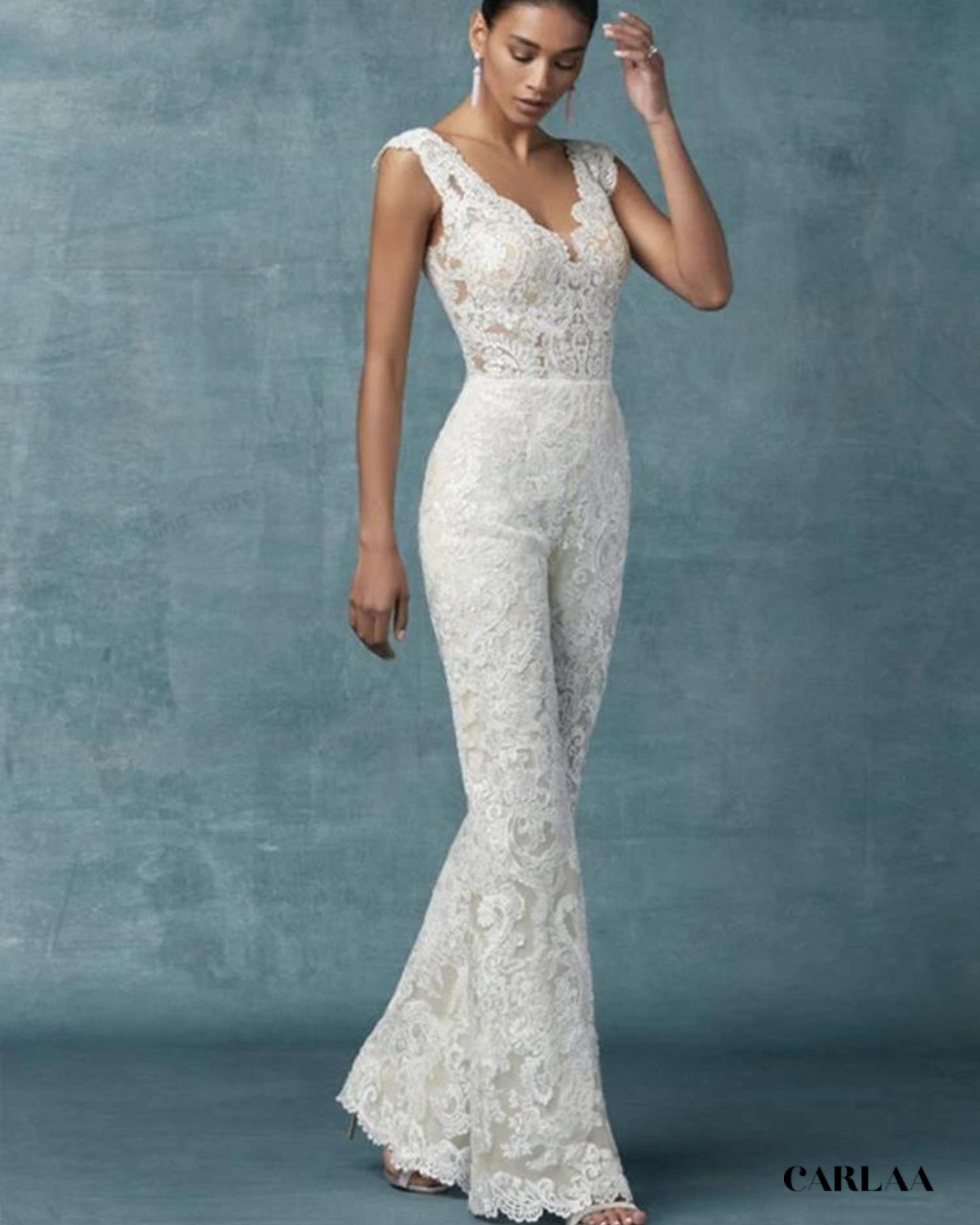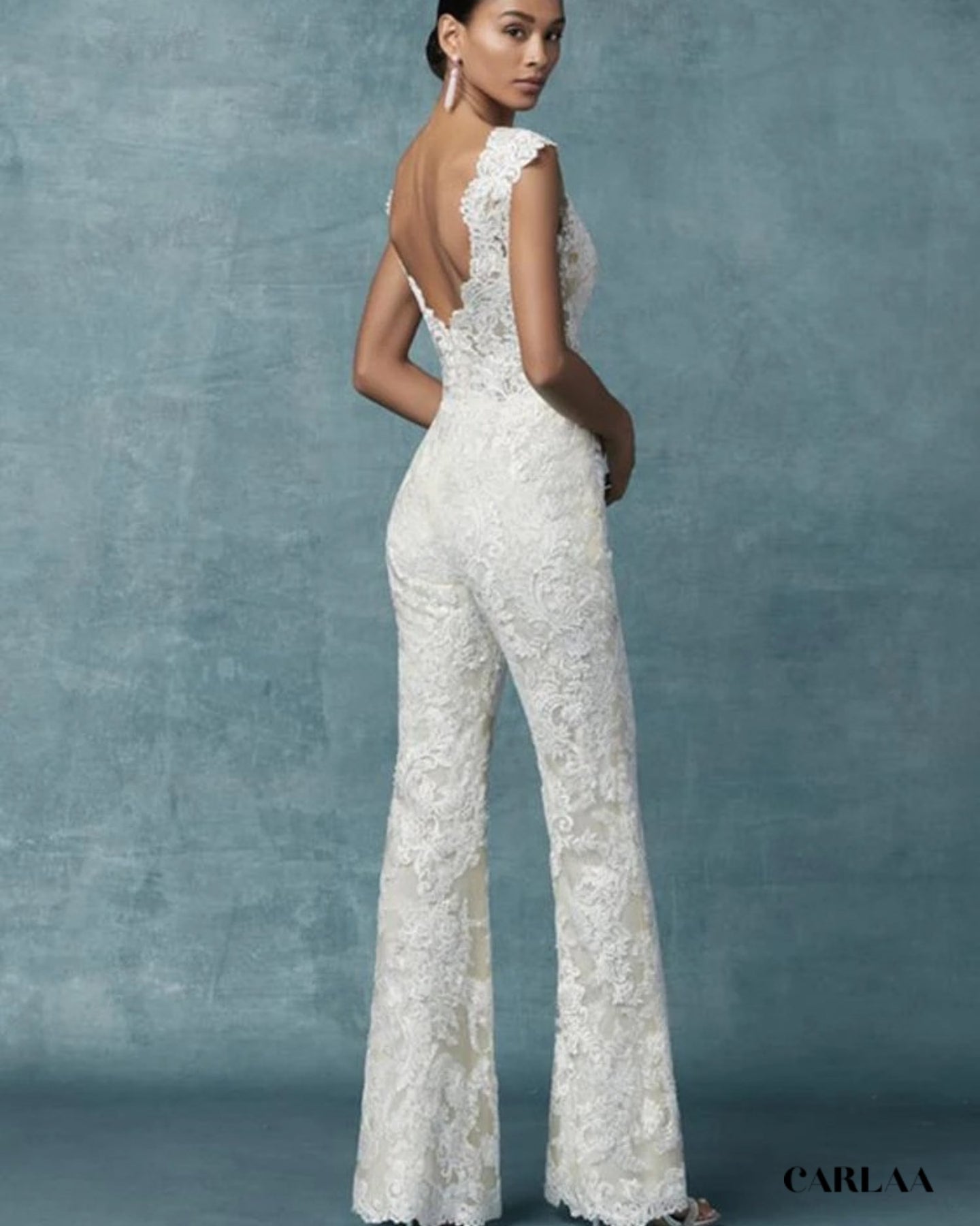 ✨ Jumpsuit Standesamt Spitze, l’élégance moderne qui allie la grâce d’une robe de mariée à la confiance d’une tenue contemporaine, pour te faire briller avec style et légèreté le jour le plus précieux de ta vie. ✨